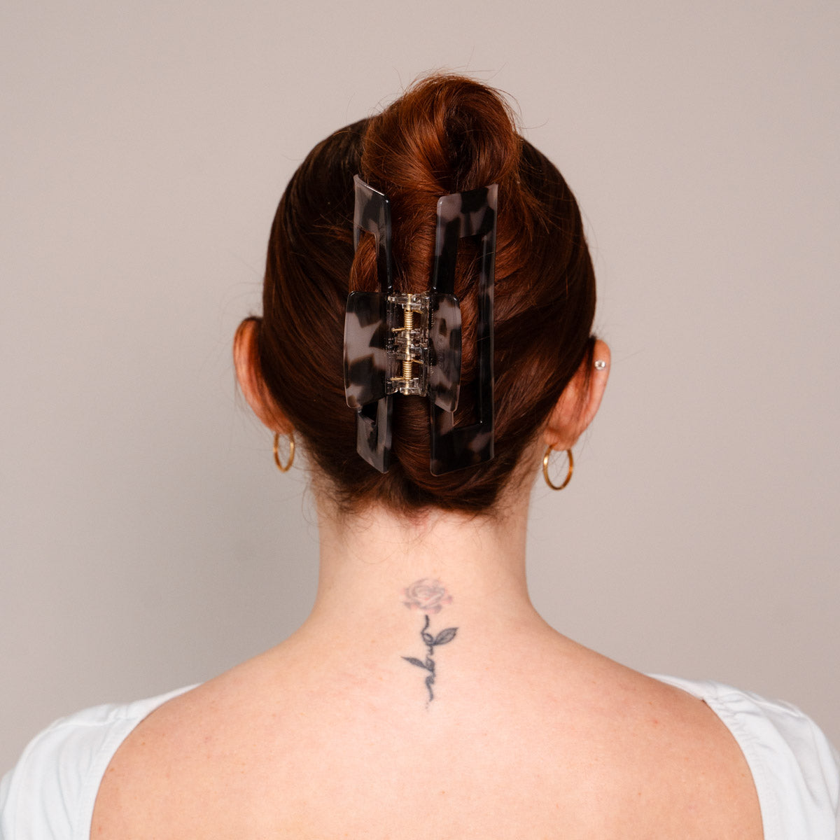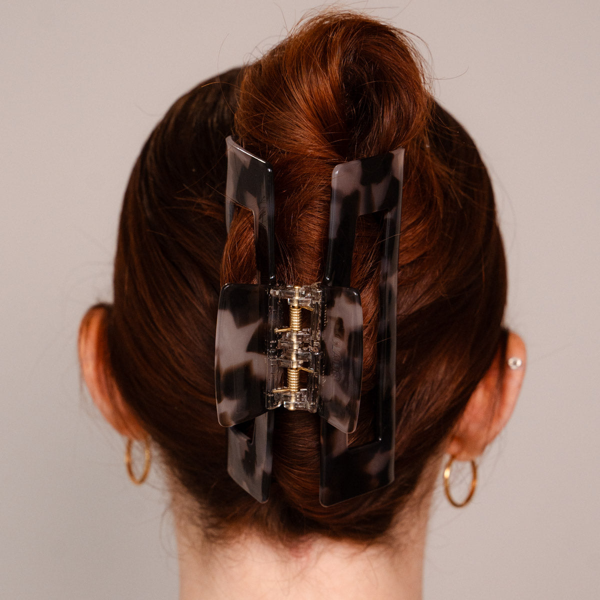 MARTHA ist ein Must-Have für deine ultra dicken Haare. Mit zwei Federn bietet die Klammer extra starken Halt, der dein Haar sicher und fest hält, egal was du vorhast, selbst wenn andere Klammern versagen. MARTHA ist Teil unserer XL Haarklammern Family und somit für big hair girls die Go-To Haarklammer. Der vielseitig-kombinierbare schlichte schwarze Ton verbindet Style und Stil, einen entspannten Look mit klassischer Eleganz. Mit der Haarspange wird dein Outfit mühelos edel wirken: unaufdringlich, aber nicht zu übersehen.