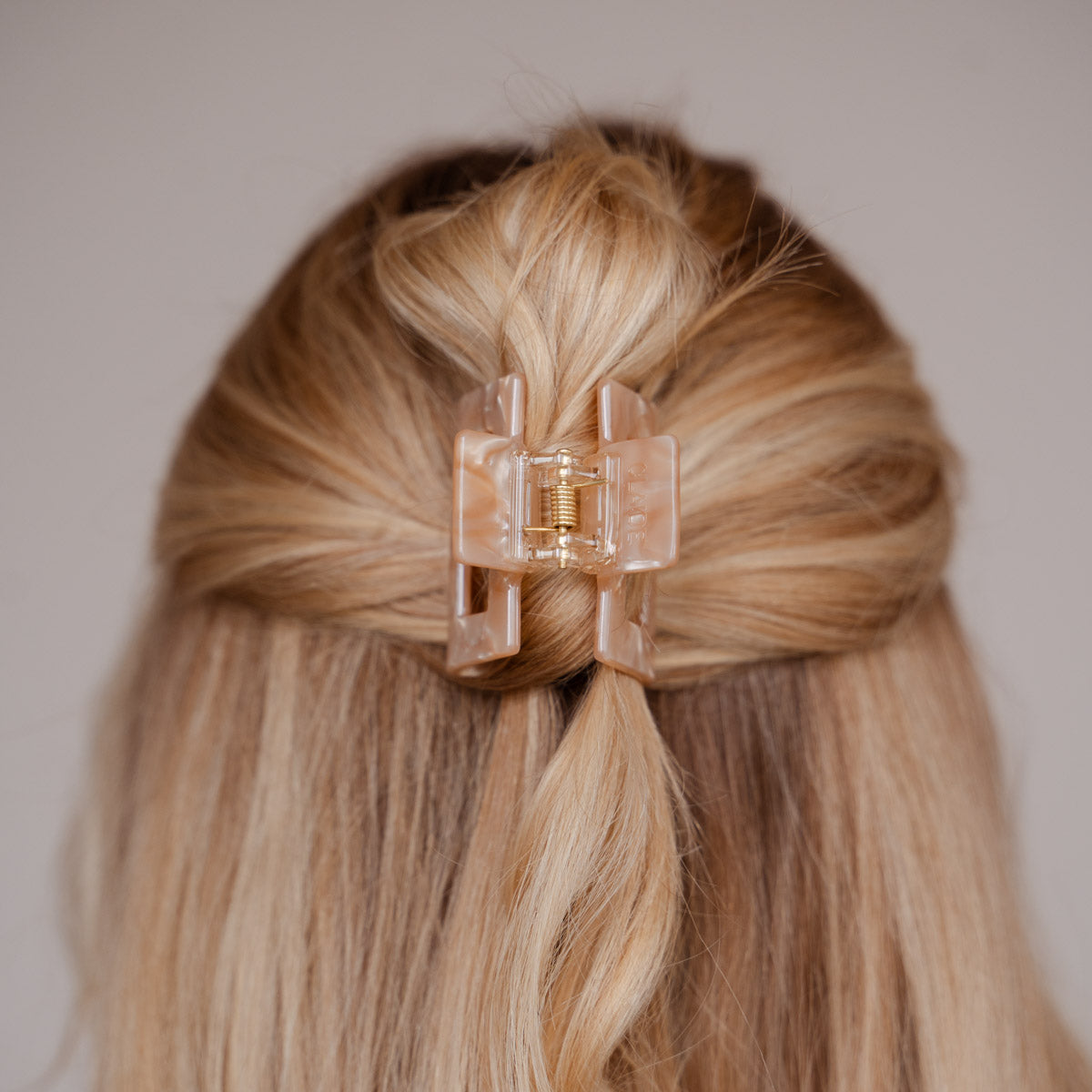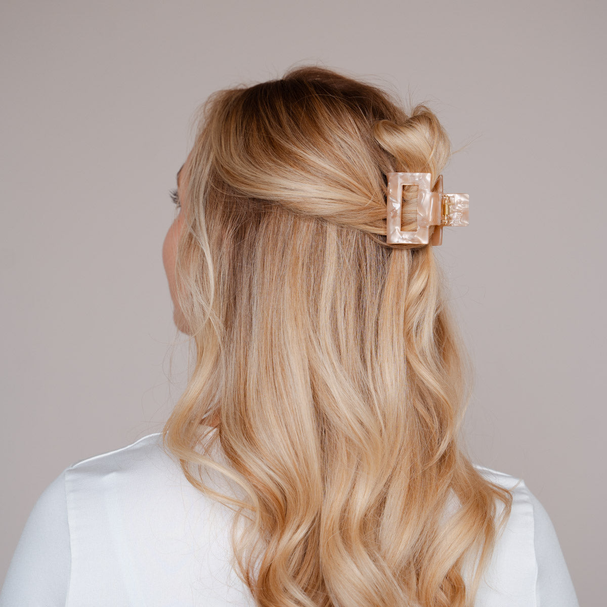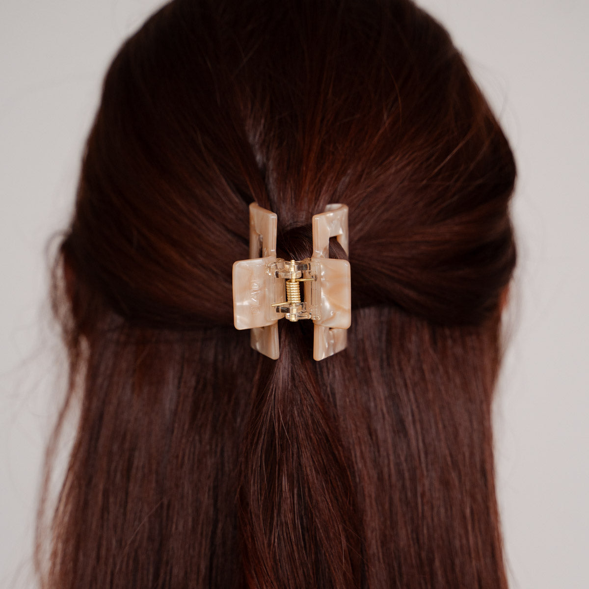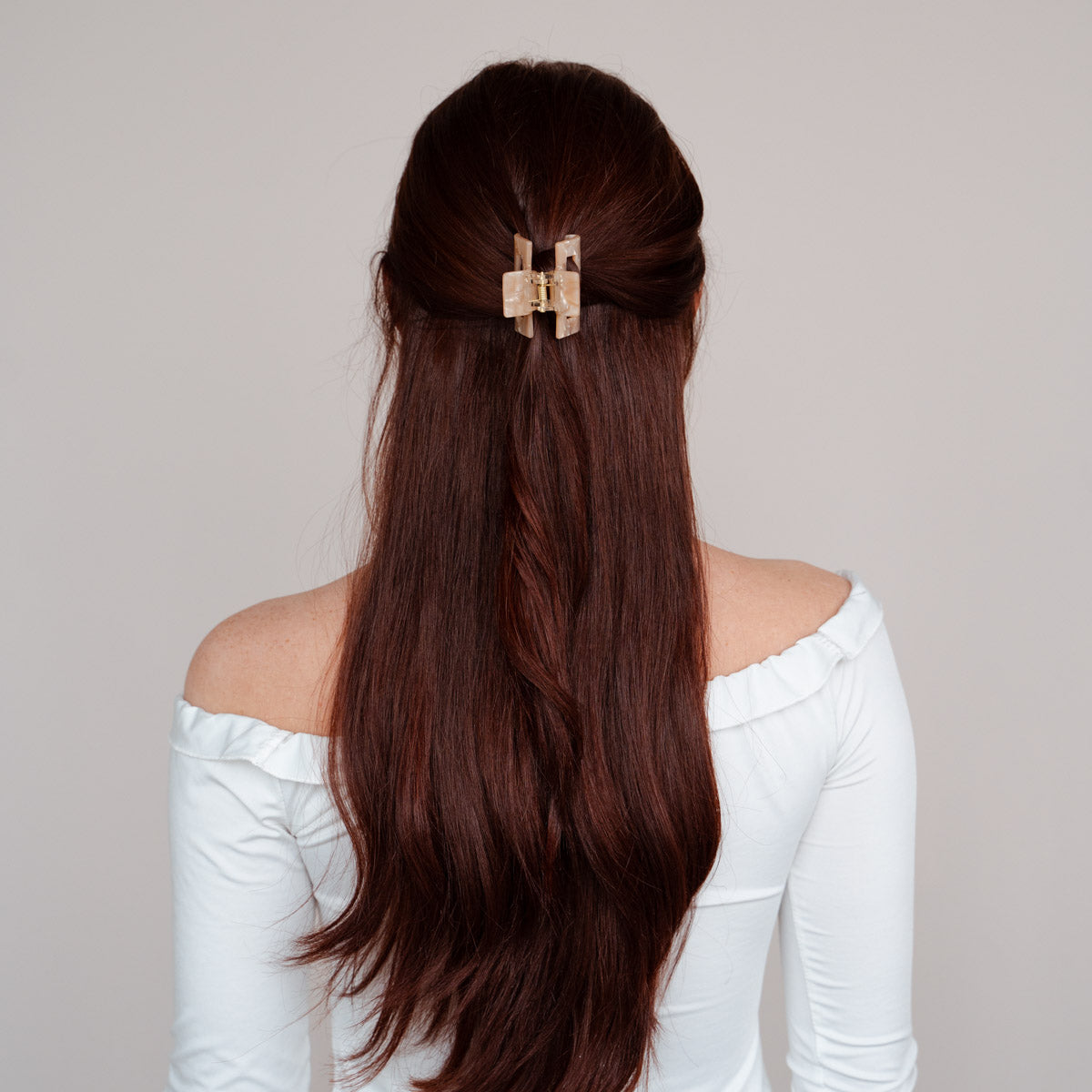 Unsere Mira Clip ist ein wahrer Eyecatcher! Mit ihrem schönen caramel Ton könnt Ihr um die Wette strahlen. Mira eignet sich sowohl für feineres, als auch dickeres Haar. Sie ist groß genug, um das gesamte Haar hochzustecken, kann aber auch für einen Halfbun genutzt werden. Eine Haarspange für das perfekte Haarstyling.