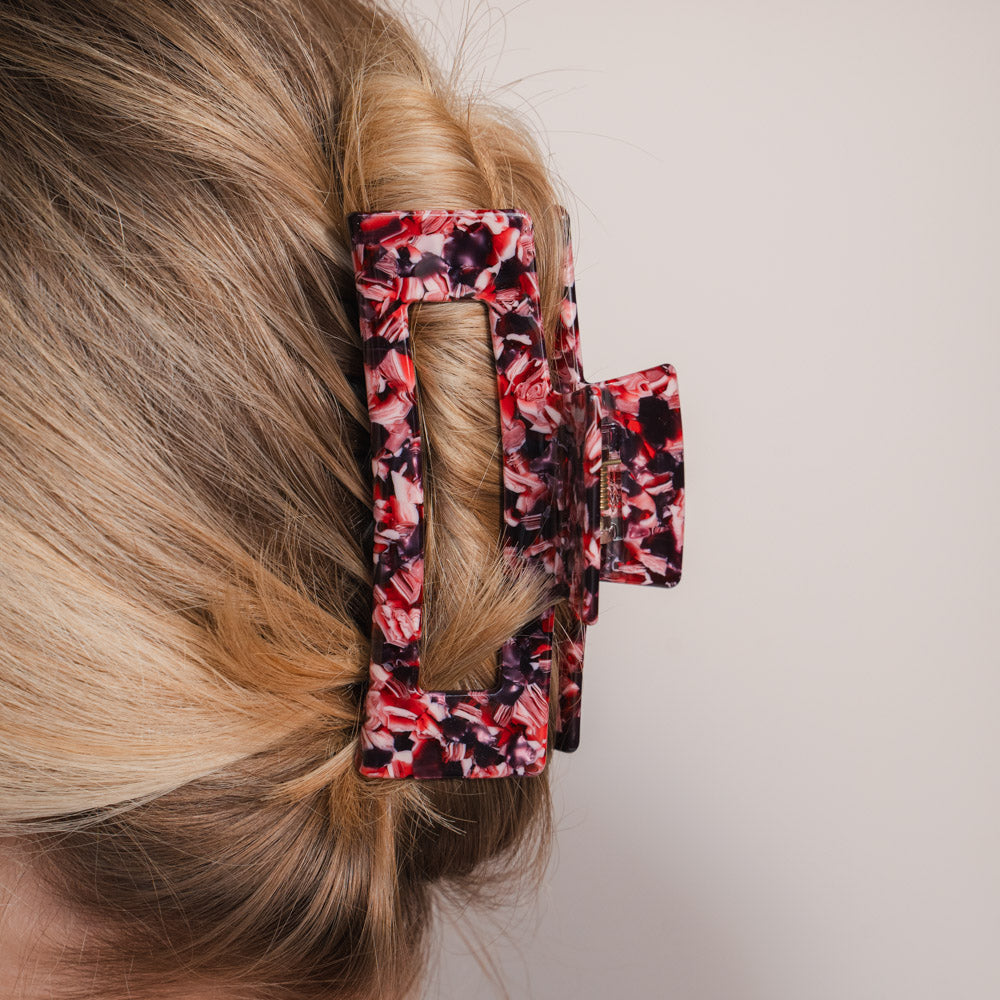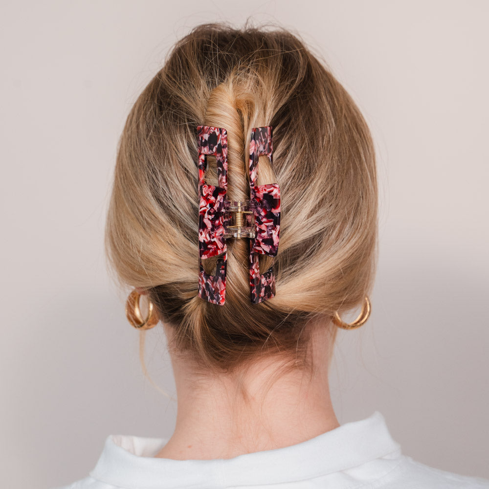 Die Neva Haarklammer ist ein Must-Have für deine Haare. Egal ob viel Haar, langes Haar, lockiges Haar oder alles in Kombination: sie hält einfach immer, selbst wenn andere Haarspangen versagen. Mit ihrem dreamy roten Design lässt sich die Neva Haarklammer mühelos in jede Frisur integrieren und bietet dabei einen zuverlässigen Halt, ohne die Haare zu beschädigen oder zu strapazieren.