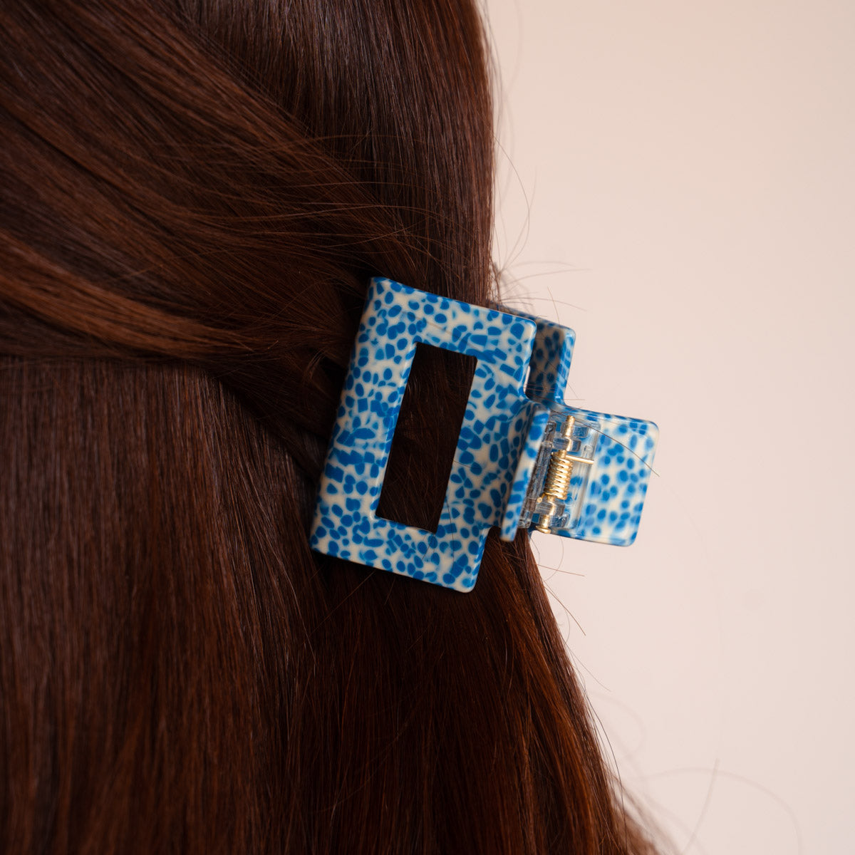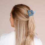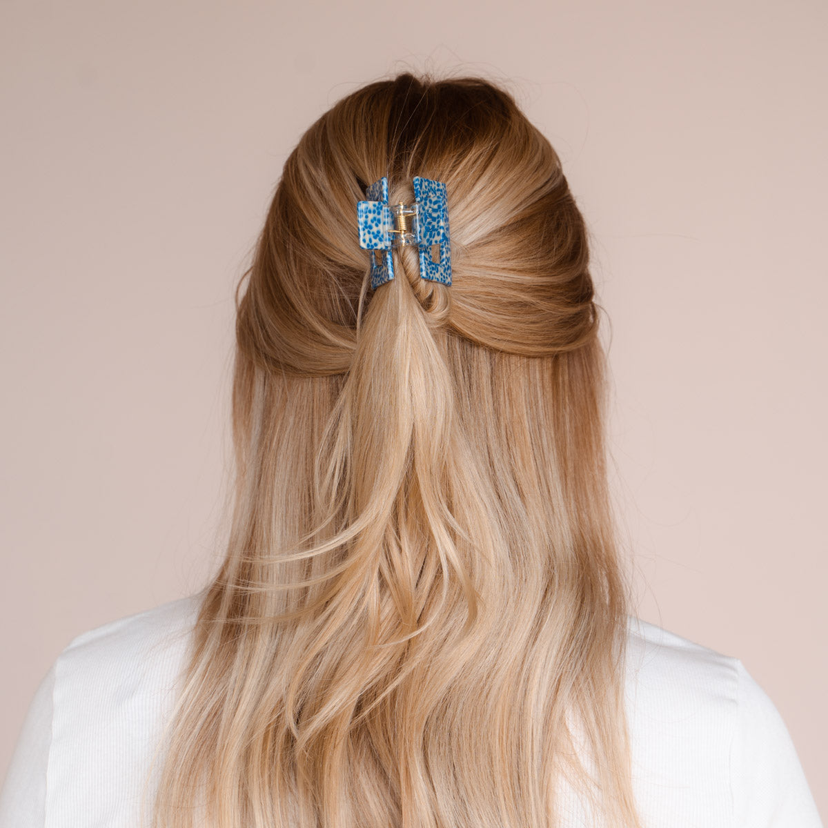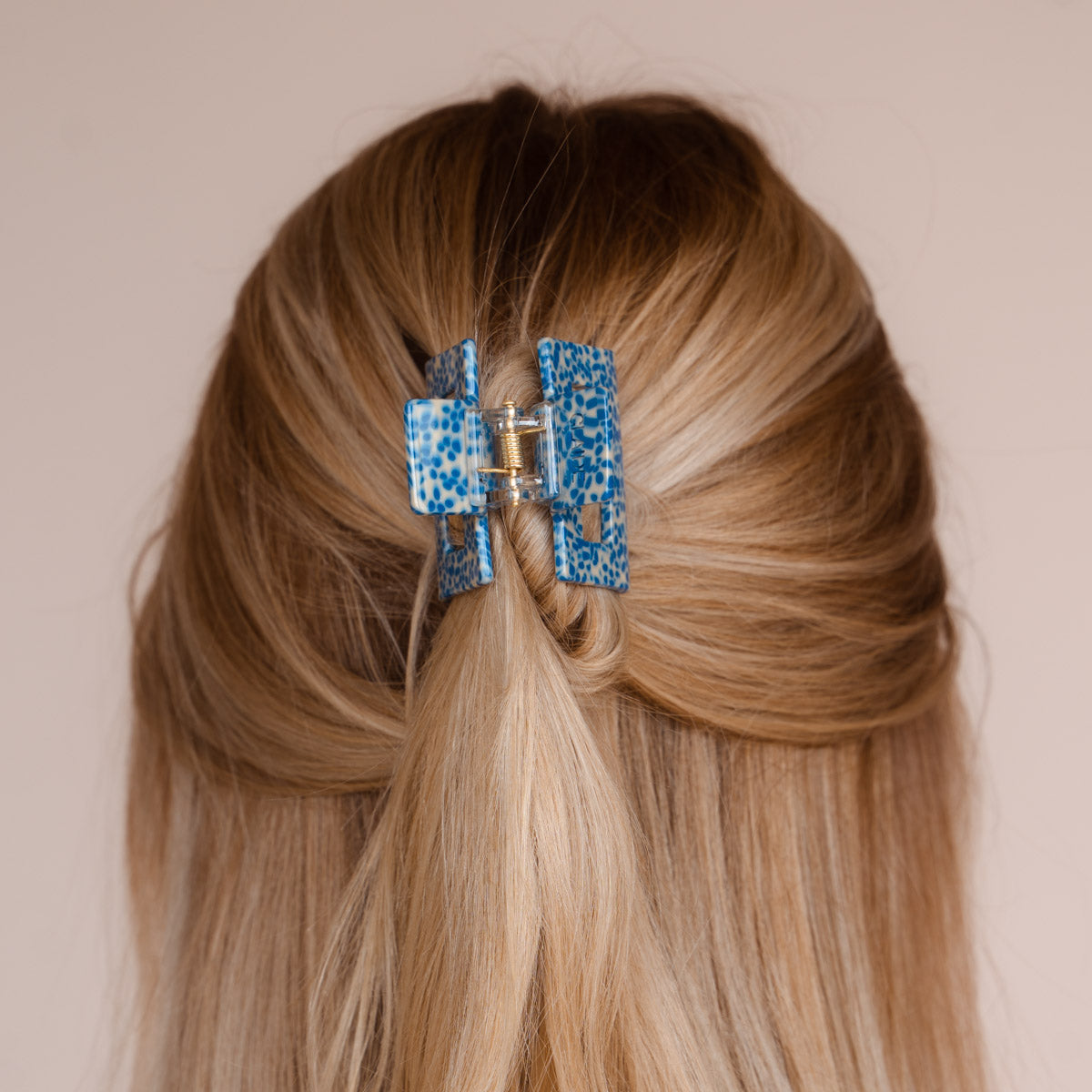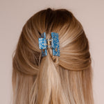 Unsere Paris Clip ist ein wahrer Eyecatcher! Mit ihren schönen denim Farben passt Sie einfach immer. Paris eignet sich sowohl für feineres, als auch dickeres Haar. Sie ist groß genug, um das gesamte Haar hochzustecken, kann aber auch für einen Halfbun genutzt werden. Eine Haarspange für das perfekte Haarstyling.