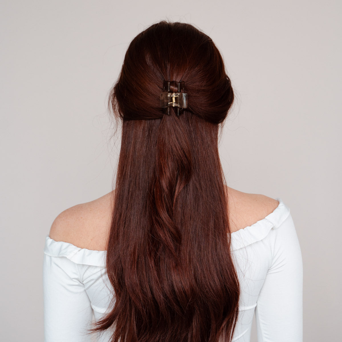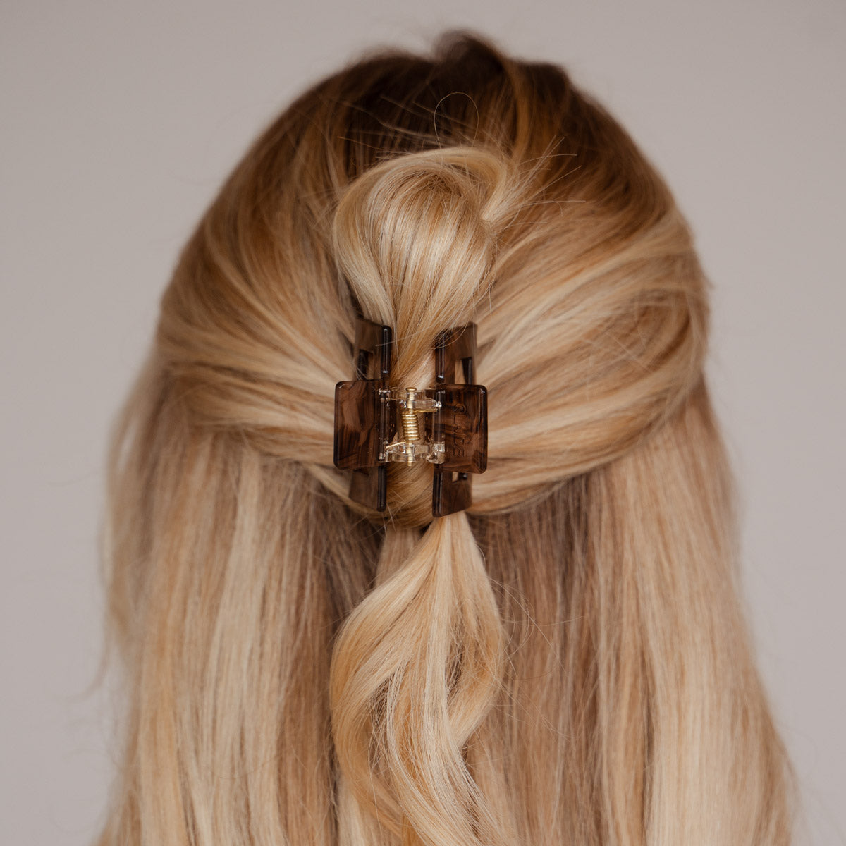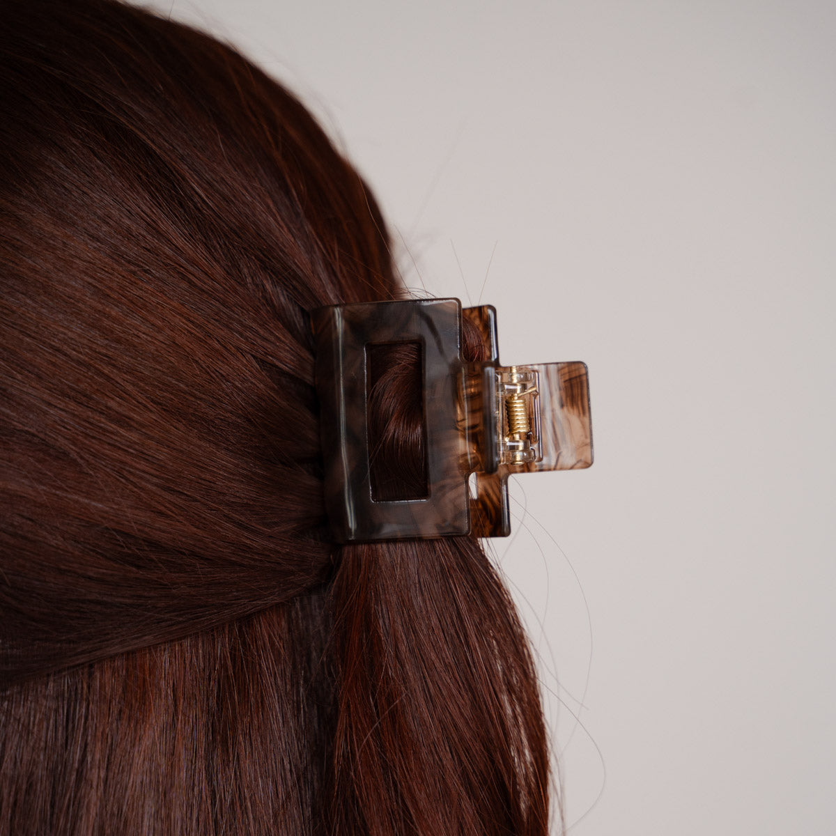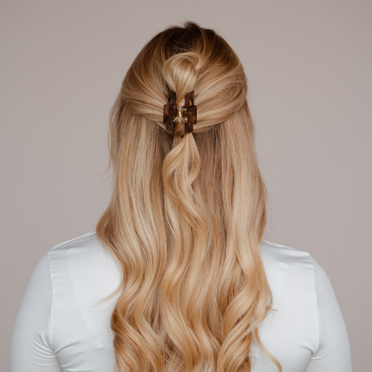 Unsere Roana Clip ist ein wahrer Eyecatcher! Mit ihrem schönen Mocca könnt Ihr um die Wette strahlen. Roana eignet sich sowohl für feineres, als auch dickeres Haar. Sie ist groß genug, um das gesamte Haar hochzustecken, kann aber auch für einen Halfbun genutzt werden. Eine Haarspange für das perfekte Haarstyling.
