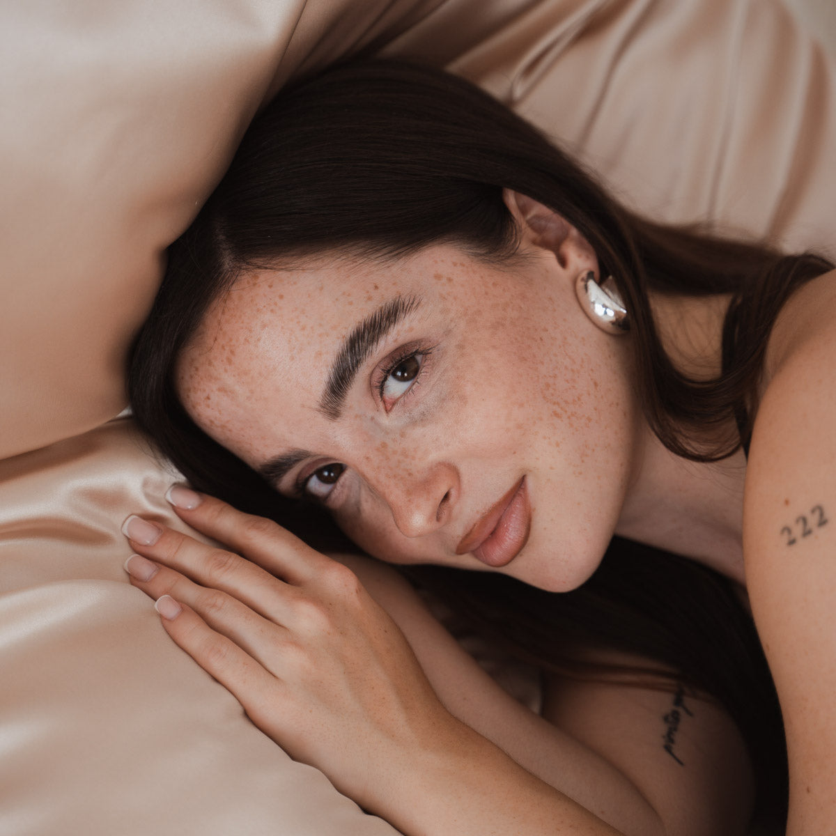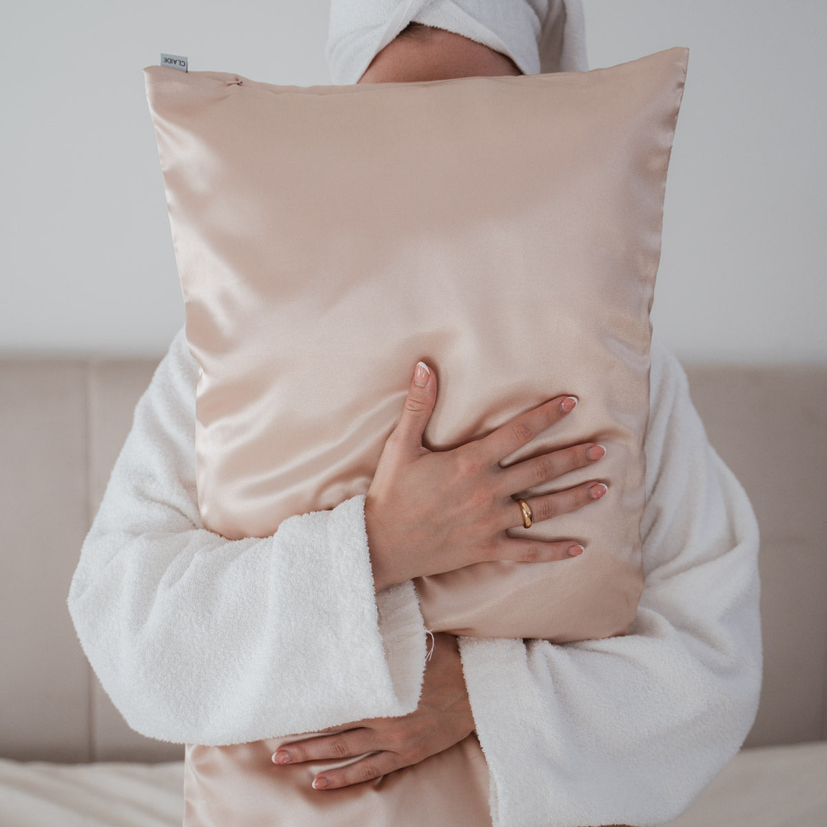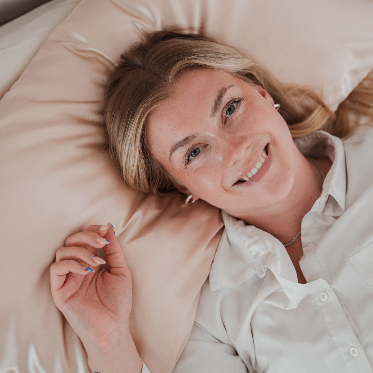 Der glatte, atmungsaktive Satin schont deine Haut und beugt Fältchen, Irritationen und Unreinheiten vor – für einen frischen Teint am Morgen.