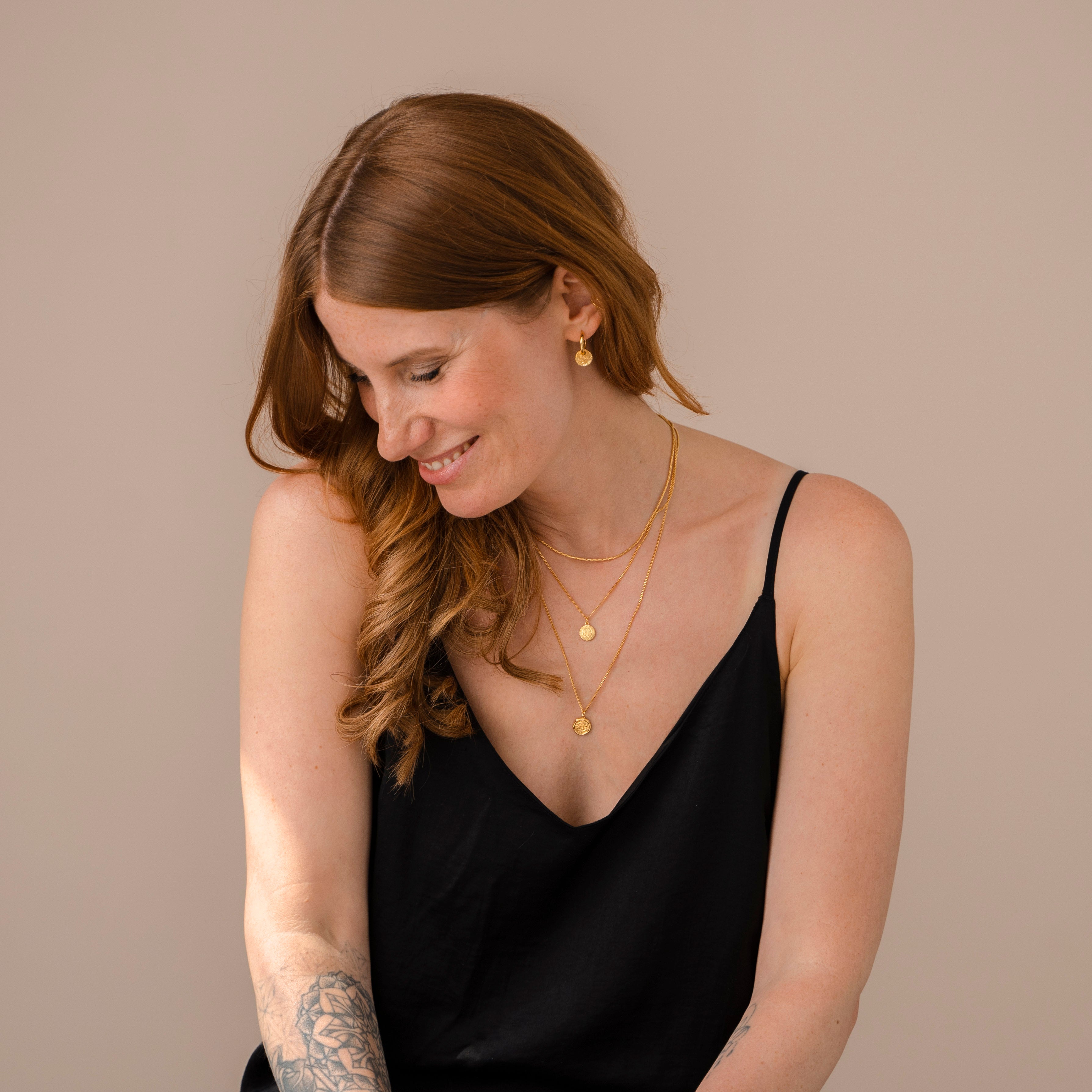 Unsere Schmuckstücke werden aus hochwertigem Eco Brass gefertigt und sind je nach Variante mit 18 Karat Gold oder 925 Sterling Silber überzogen.