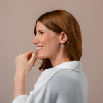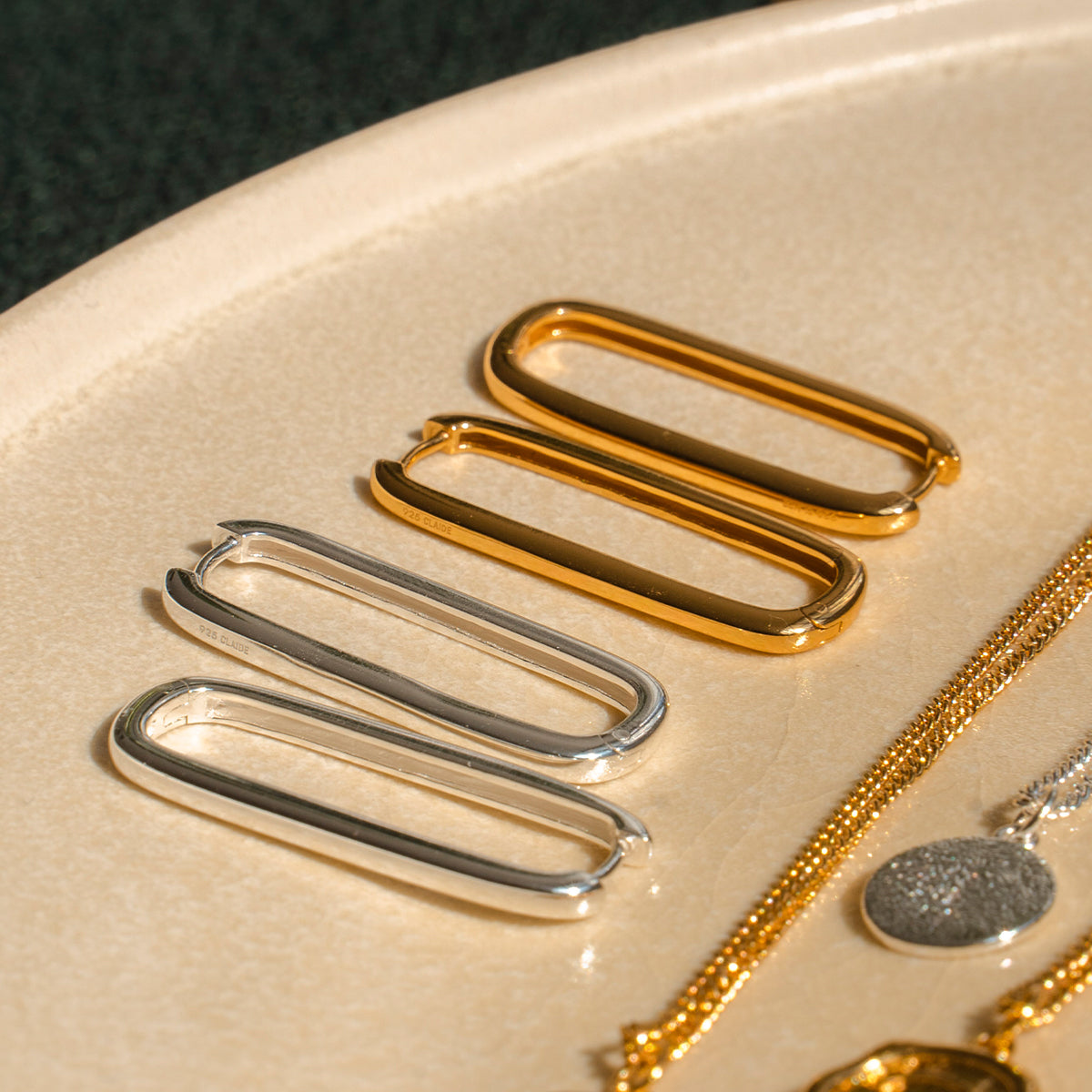 Unsere Schmuckstücke werden aus hochwertigem Eco Brass gefertigt und sind je nach Variante mit 18 Karat Gold oder 925 Sterling Silber überzogen.
