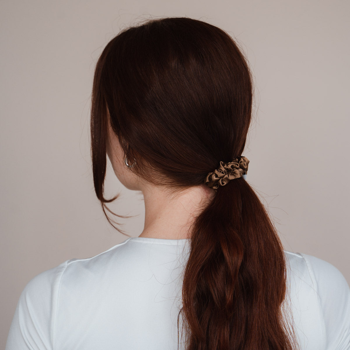 Haarschonend, Im Vergleich zu herkömmlichen Haargummis sind unsere Scrunchies sanfter zu den Haaren. Der Seidenüberzug reduziert das Risiko von Haarbruch und Spliss - für gesünderes und kräftigeres Haar.