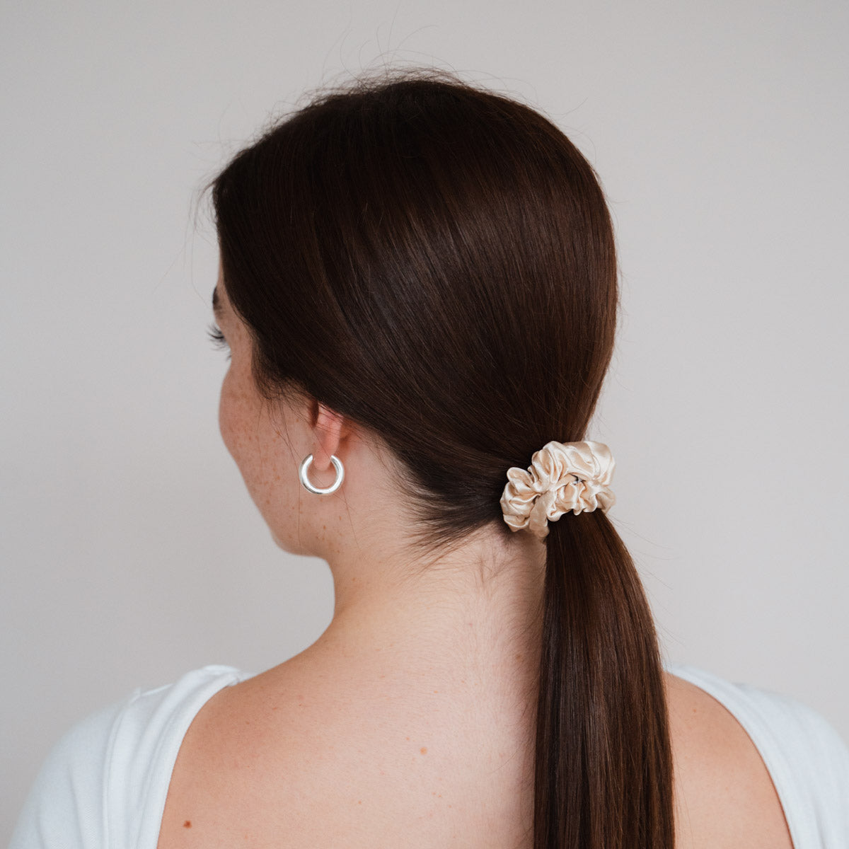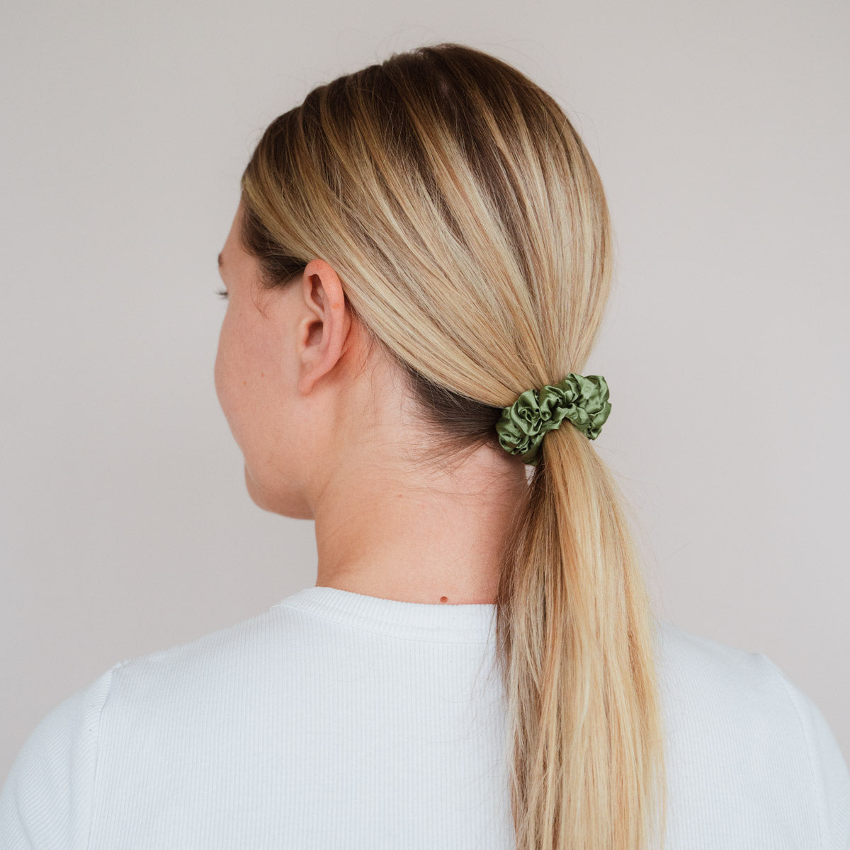 Starker Halt, unsere Scrunchies geben deiner Frisur den ganzen Tag (oder Nacht) einen sicheren und sanften Halt.