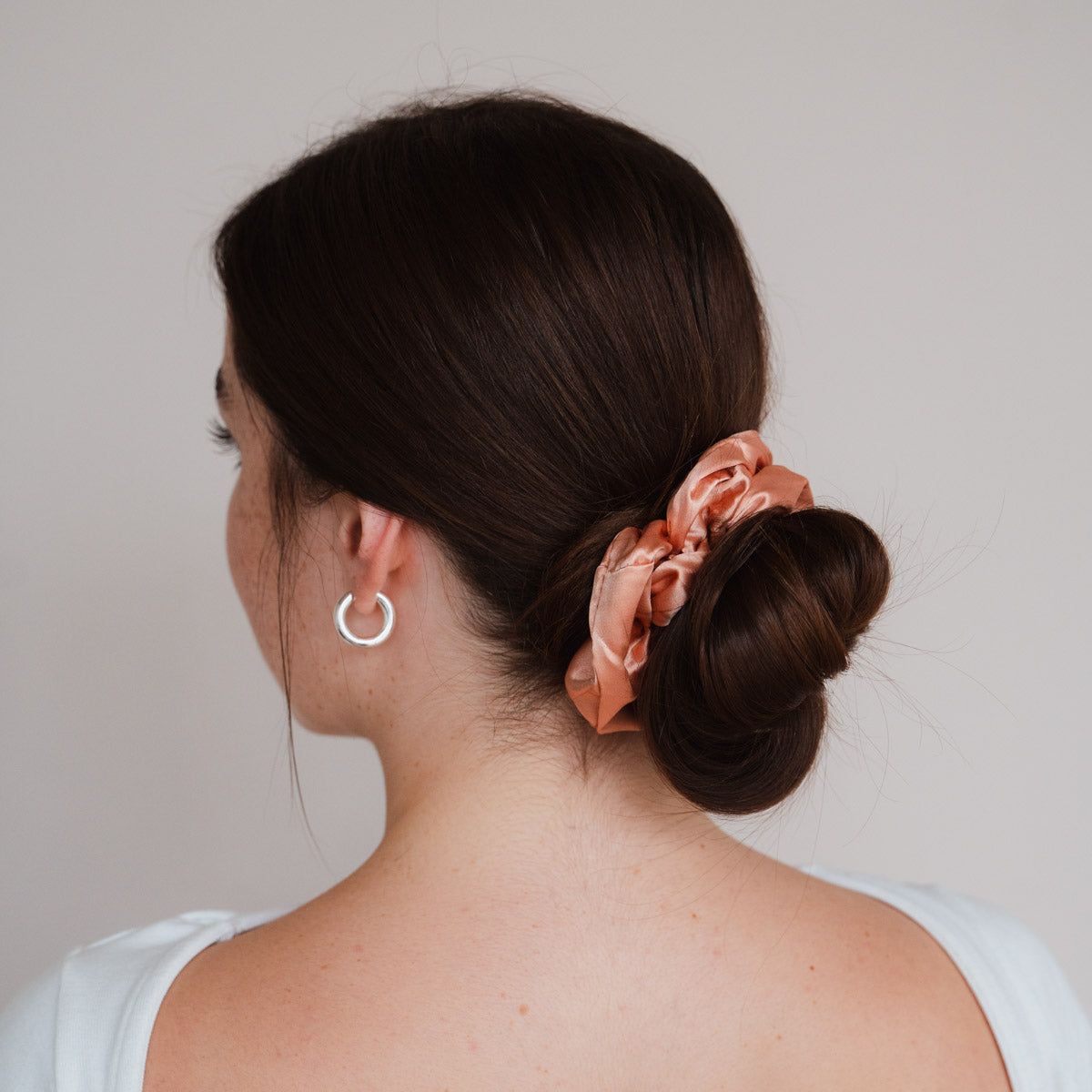 Weniger Druckpunkte: Der größere Durchmesser und die weichere Struktur unserer Scrunchies verteilen den Druck gleichmäßiger auf das Haar. Bye Bye Kopfschmerzen.