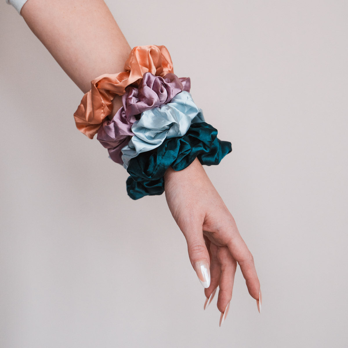 Starker Halt, unsere Scrunchies geben deiner Frisur den ganzen Tag (oder Nacht) einen sicheren und sanften Halt.
