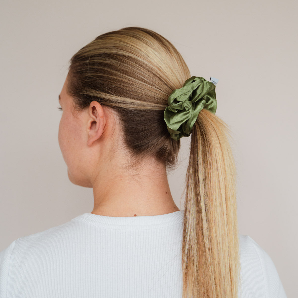 Starker Halt, unsere Scrunchies geben deiner Frisur den ganzen Tag (oder Nacht) einen sicheren und sanften Halt.