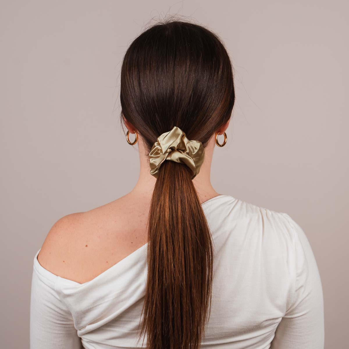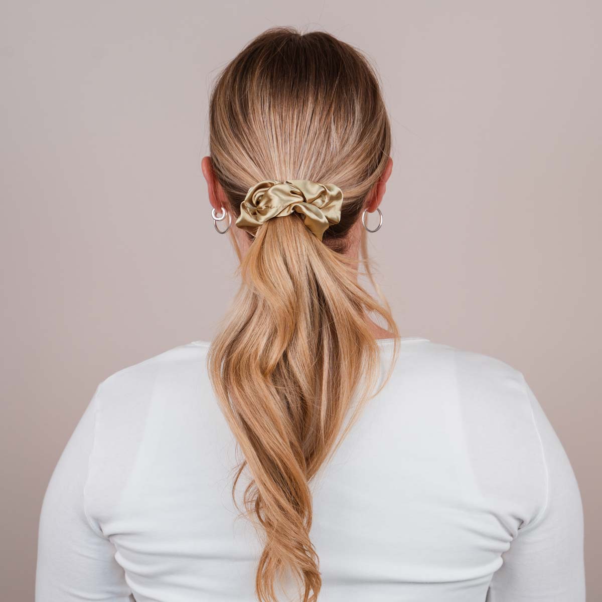 Starker Halt, unsere Scrunchies geben deiner Frisur den ganzen Tag (oder Nacht) einen sicheren und sanften Halt.