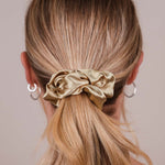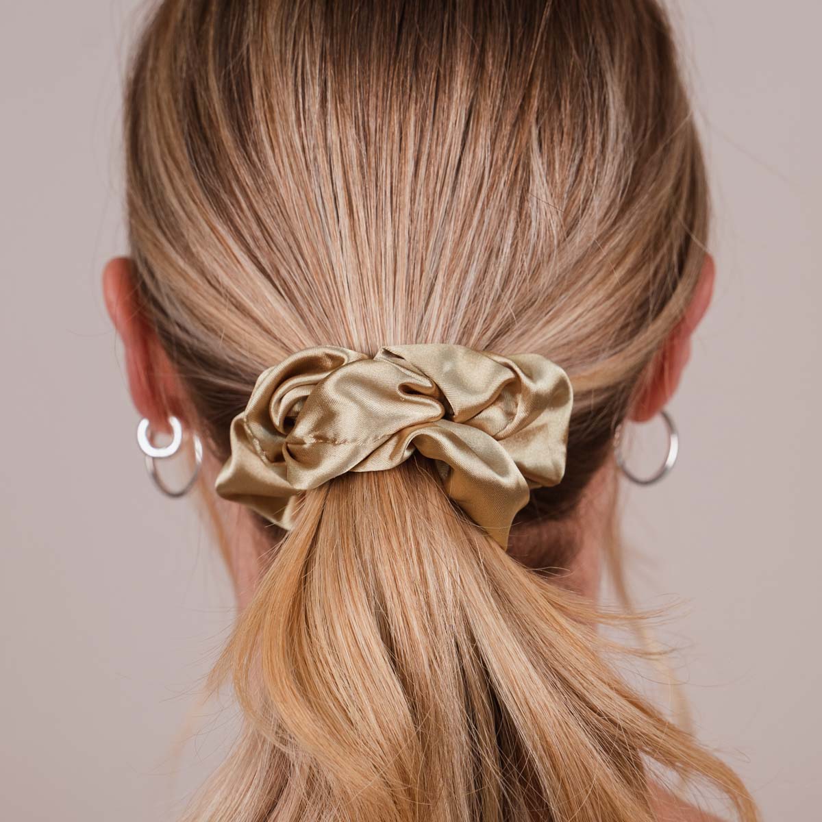 Sag Hallo zum süßesten Scrunchie Camille! Mit seinem schönen goldenen Design und seiner kompakten Größe ist er perfekt für unterwegs und lässt sich problemlos in jeder Tasche oder am Handgelenk verstauen. Der Camille Scrunchie eignet sich sowohl für feineres, als auch dickeres Haar. Lass dich von der besonderen Magie unserer Scrunchies aus Satin Seide verführen und du wirst nie wieder herkömmliche Haargummis verwenden wollen.