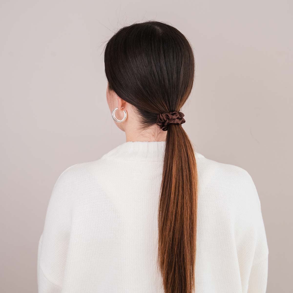 Entdecke unseren Colette Scrunchie und bringe deine Frisuren auf das nächste Level! Mit seinem besonderem braunen Design und seiner kompakten Größe ist er perfekt für unterwegs und lässt sich problemlos in jeder Tasche oder am Handgelenk verstauen. Der Colette Scrunchie eignet sich sowohl für feineres, als auch dickeres Haar. Lass dich von der besonderen Magie unserer Scrunchies aus Satin Seide verführen und du wirst nie wieder herkömmliche Haargummis verwenden wollen.