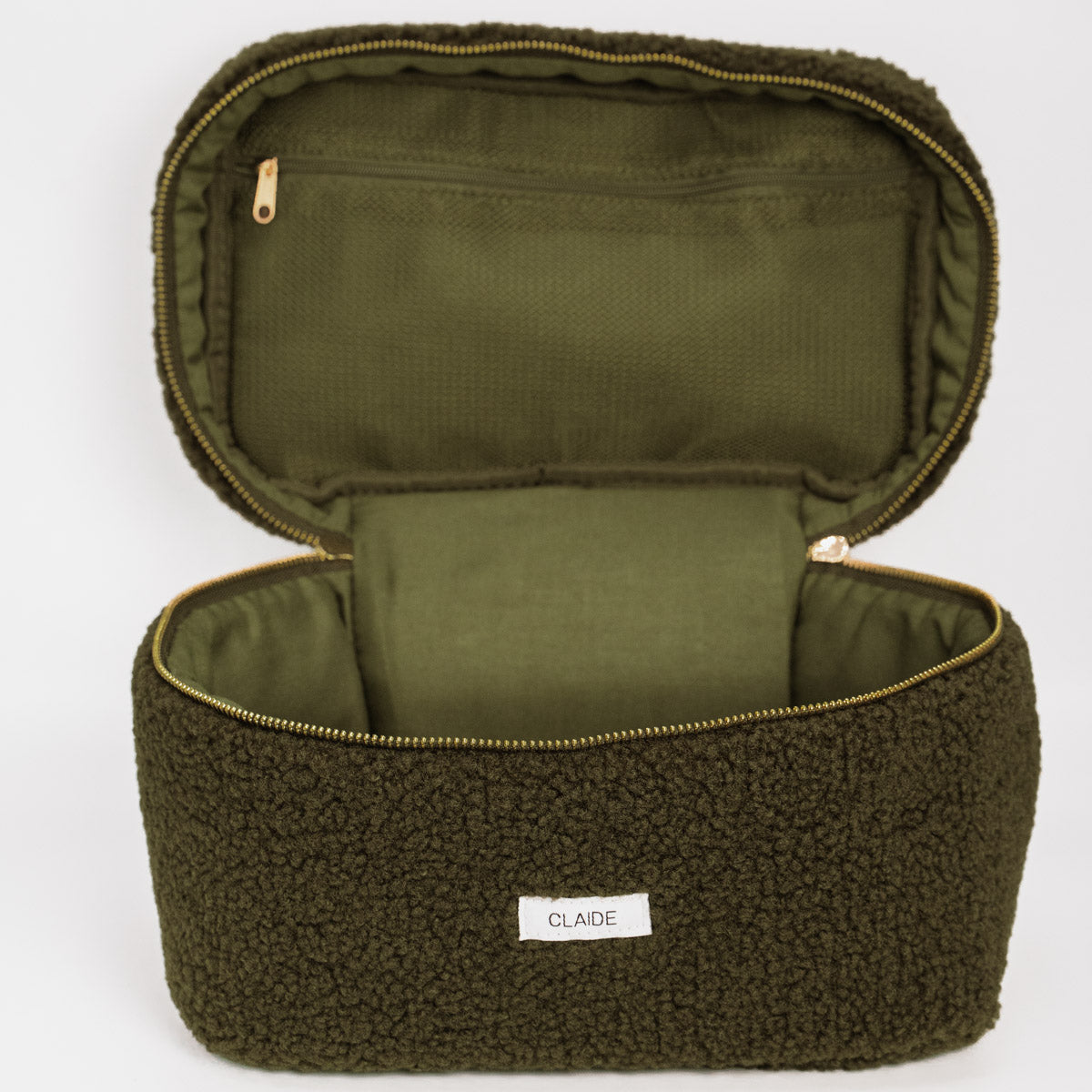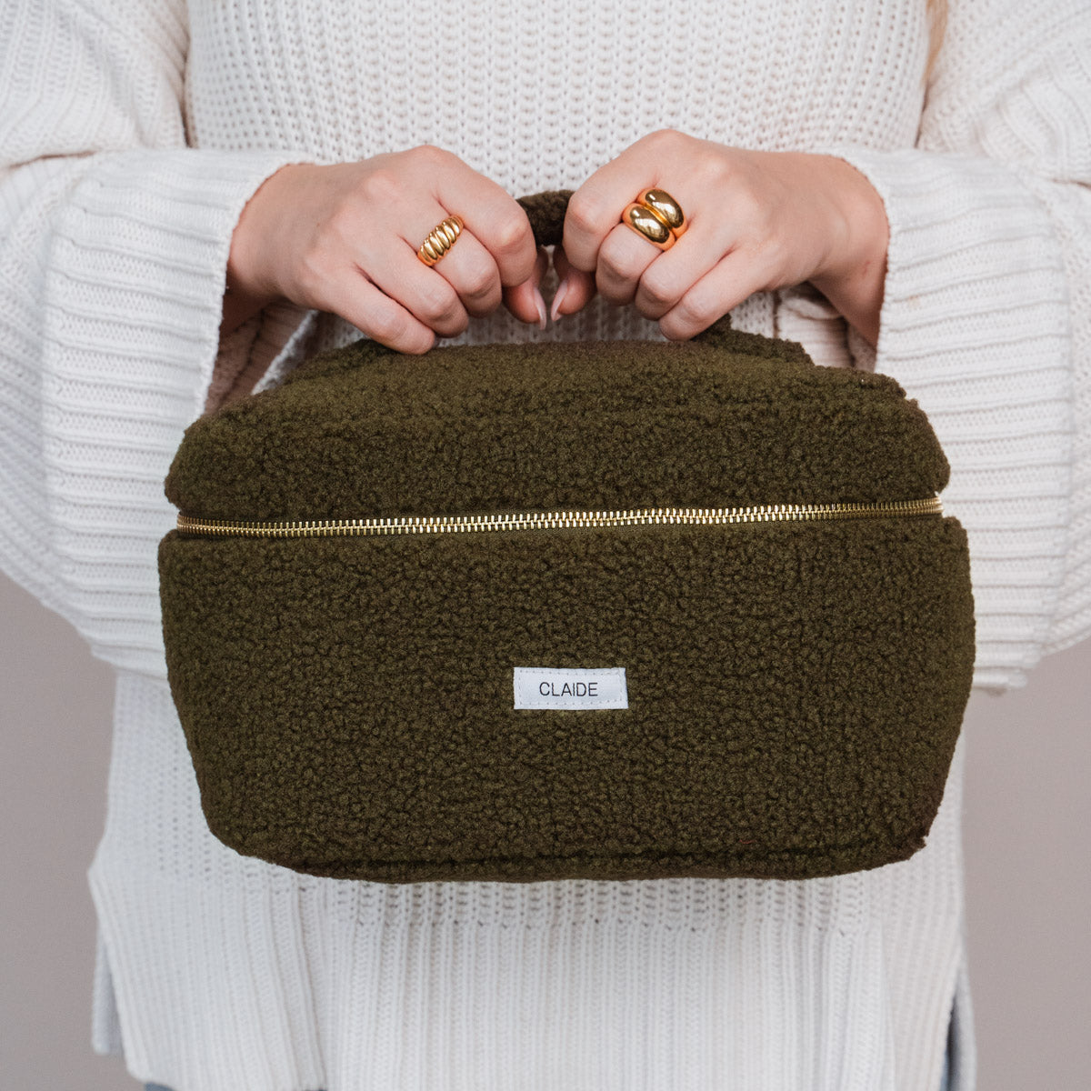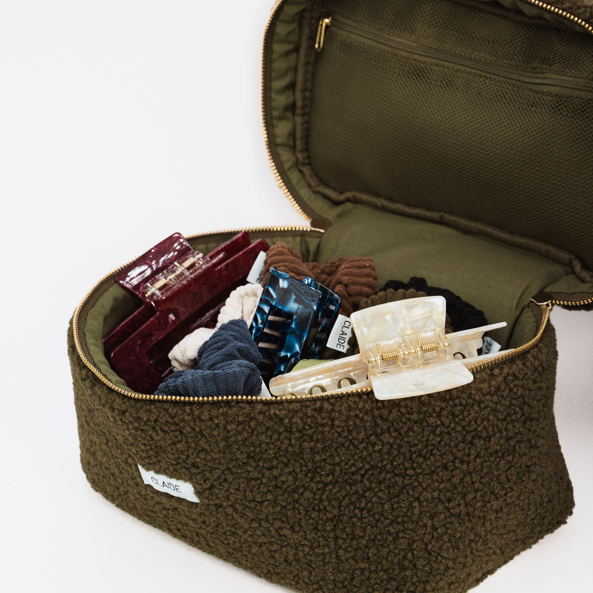 Innen bietet sie genügend Platz für deine Essentials: Pflegeprodukte, Accessoires oder Haarspangen sind sicher verstaut. Der praktische Henkel und der stabile Reißverschluss sorgen für Komfort und Ordnung – stilvoll verpackt.