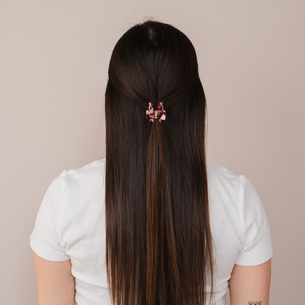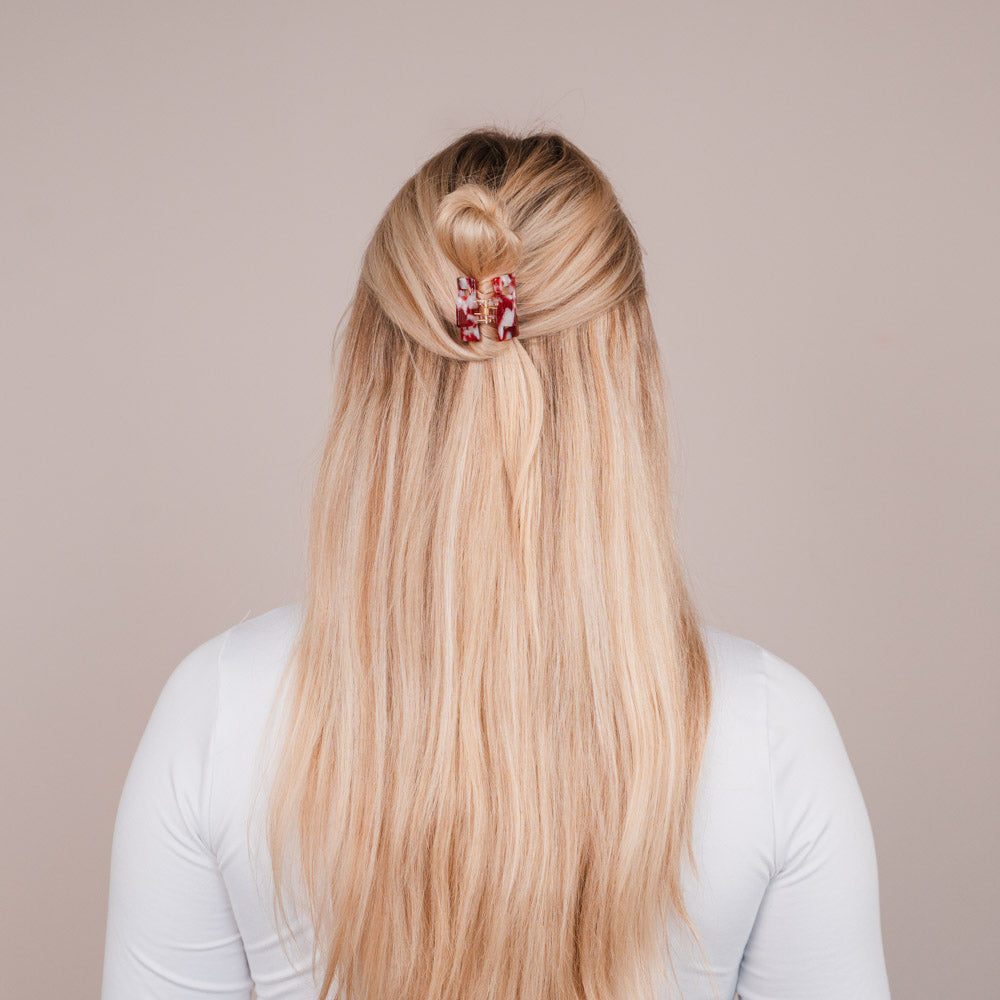 Die Casey Haarklammer ist klein, aber ein echtes Statement-Piece. Perfekt, wenn du nur ein paar Strähnen zusammenhalten möchtest und dabei nicht auf einen stilvollen Clip im Haar verzichten willst. Casey ist vielseitig einsetzbar, super süß und für jeden Haartyp geeignet – dein neues Everyday-Essential.