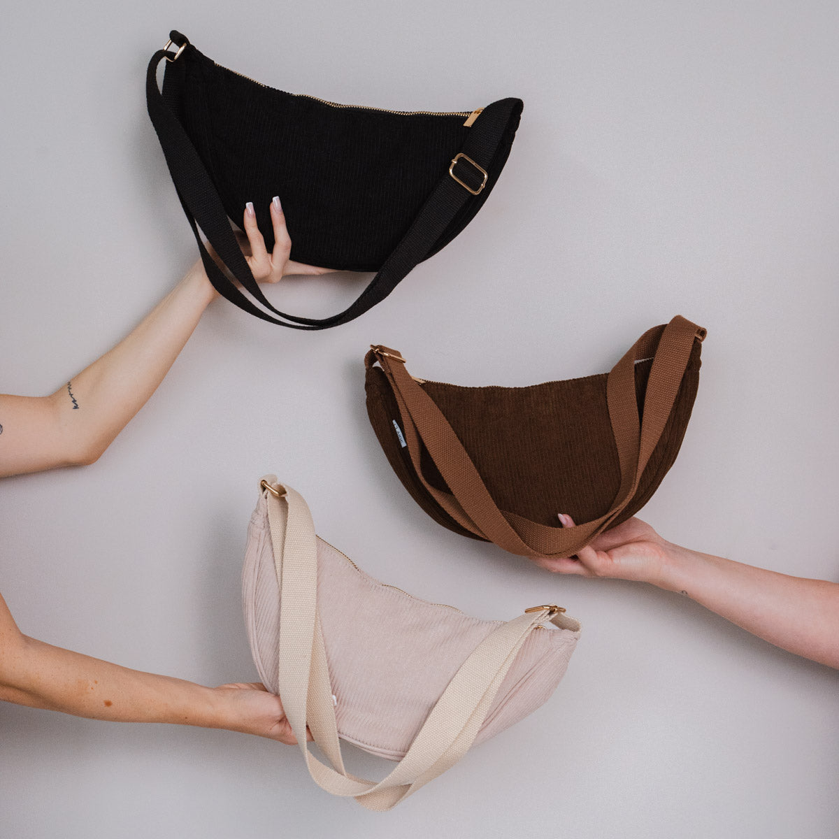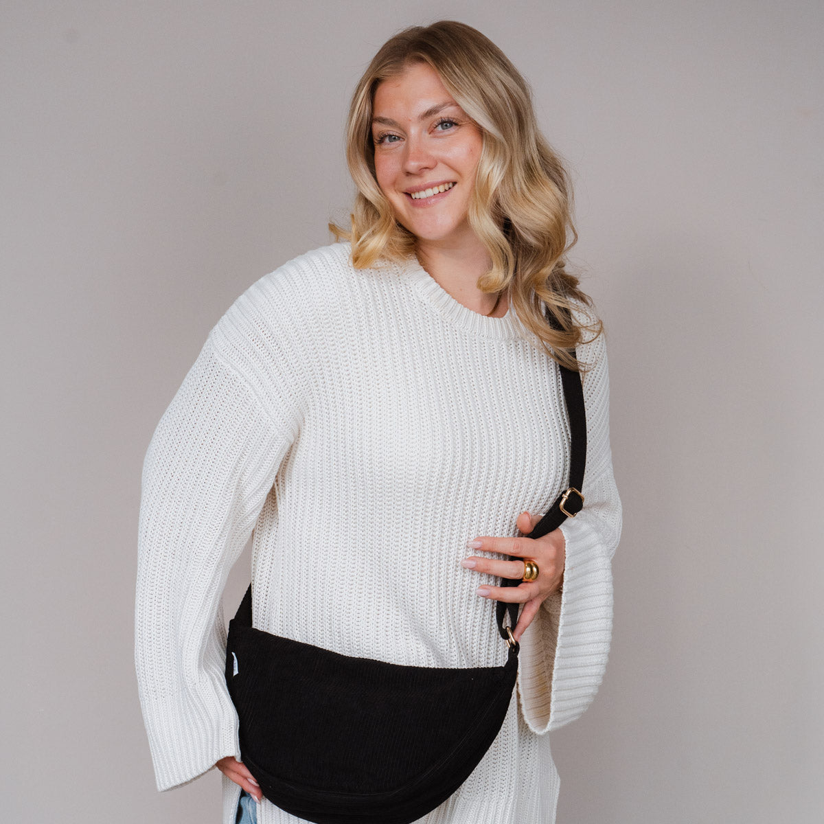 Unsere Cord Crossbody Bag in Schwarz steht für minimalistischen Stil und maximale Alltagstauglichkeit. Der feine Cordstoff verleiht ihr eine dezente Struktur, während die klassische Farbe zu jedem Outfit passt – ob elegant oder casual.