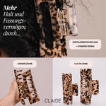 Dank verstärkter Doppelfeder, längerer Zähne und einer extra großen 14,5 cm Form bieten sie maximales Fassungsvermögen und ultimativen Halt – selbst bei besonders vollem, langem oder schwerem Haar.