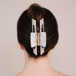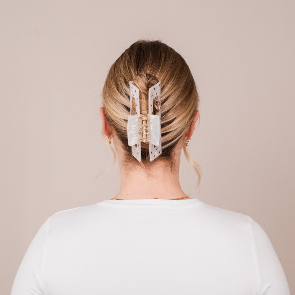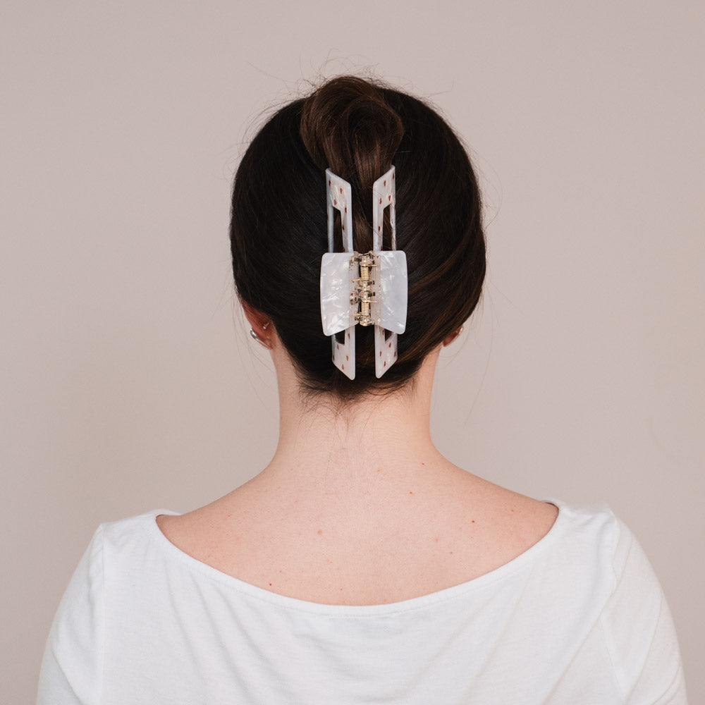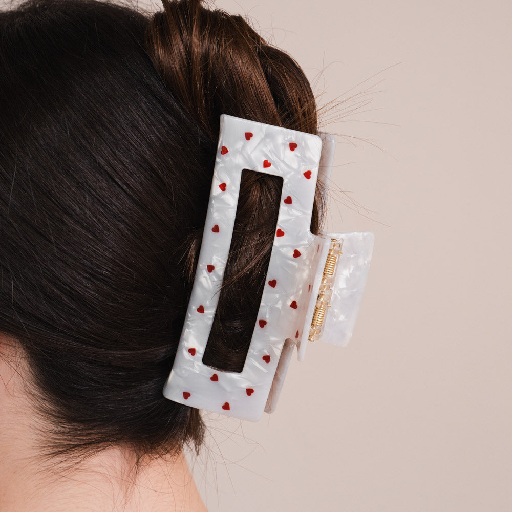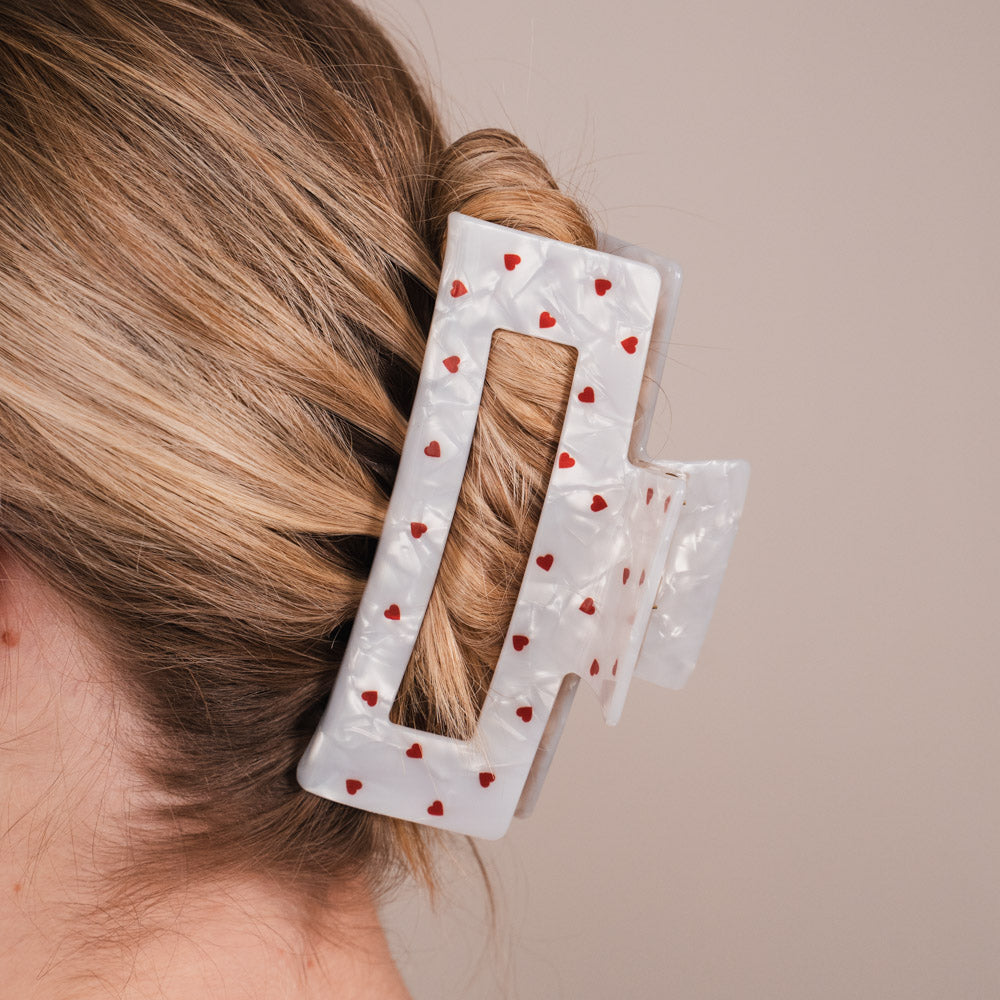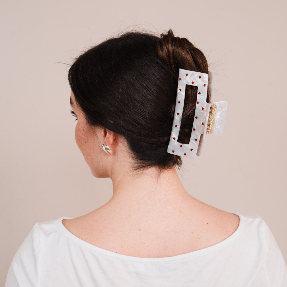 Maribelle ist die perfekte Haarklammer für dickes, voluminöses Haar – feminin im Design und stark im Halt. Das edle Perlmutt-Finish mit feinen roten Herzakzenten macht sie zu einem dezenten, stilvollen Hingucker.