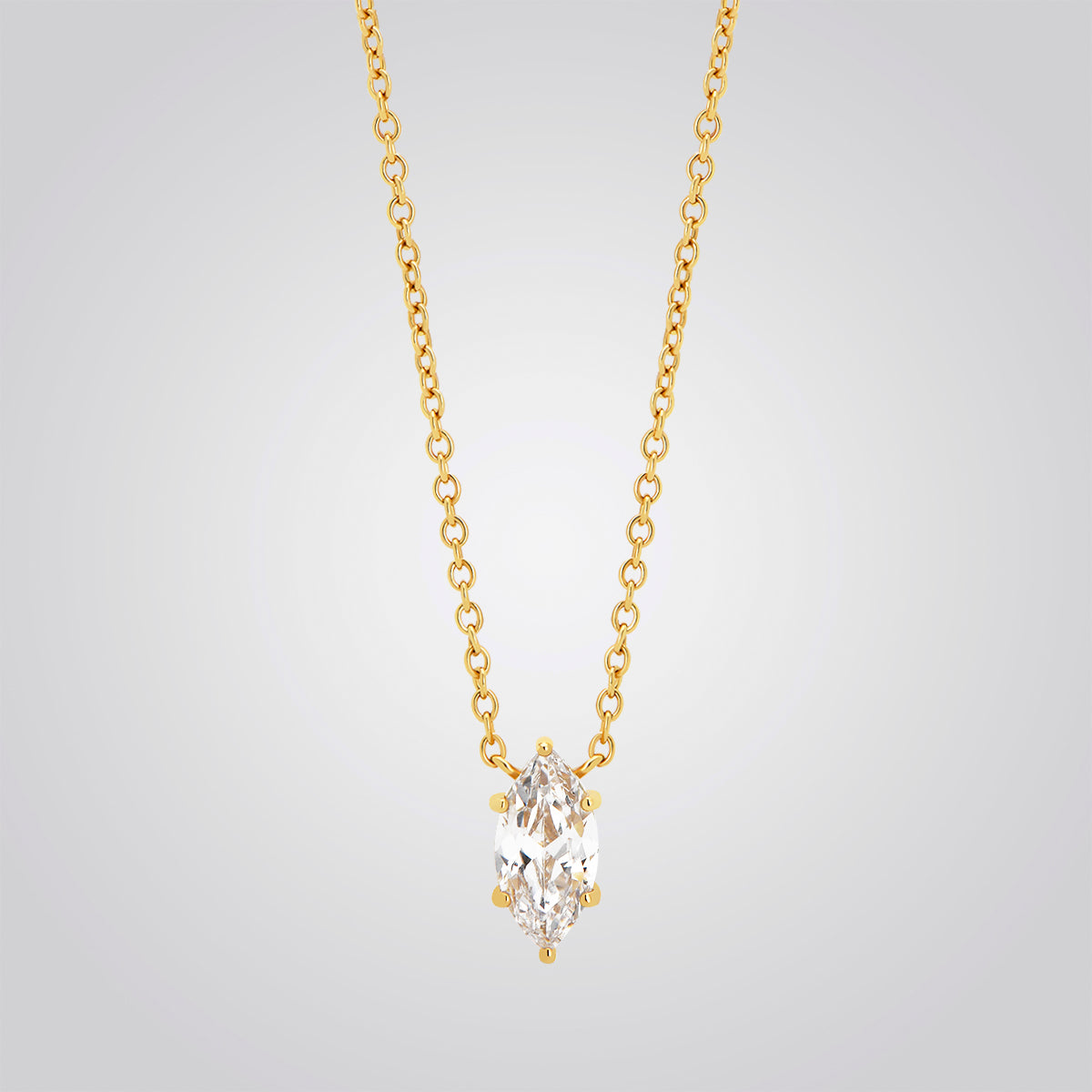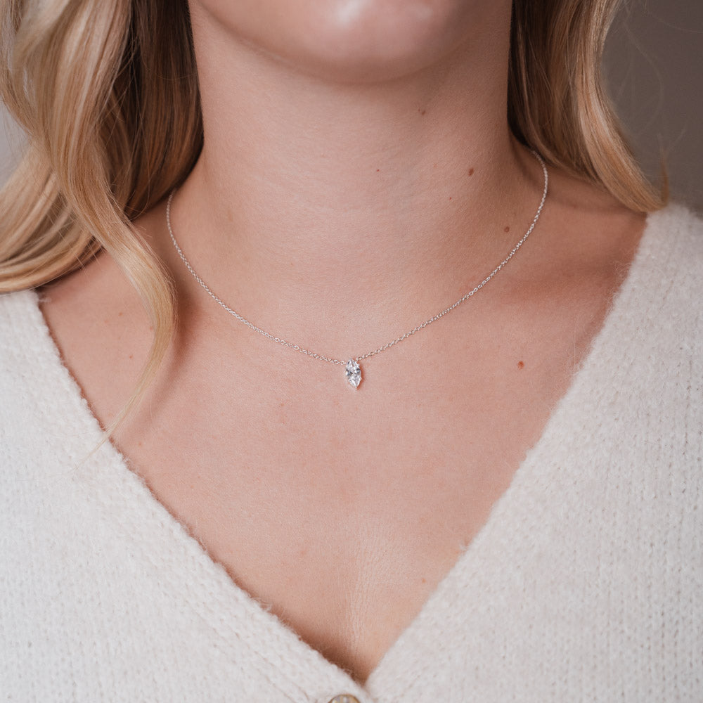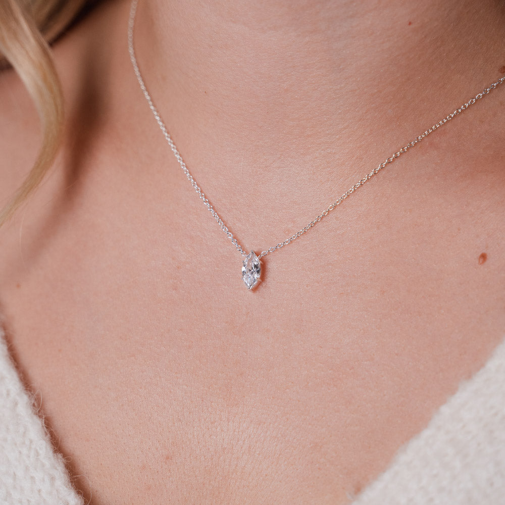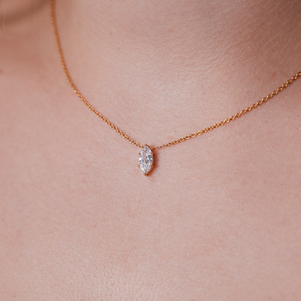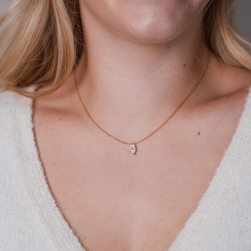 Bei der Noelia Halskette trifft ein kunstvoll geschliffener Marquise-Anhänger auf eine feine, elegante Kette. Ihr luxuriöser Look macht sie zu einem Statement-Piece, das sowohl einzeln als auch im Layering perfekt zur Geltung kommt.
