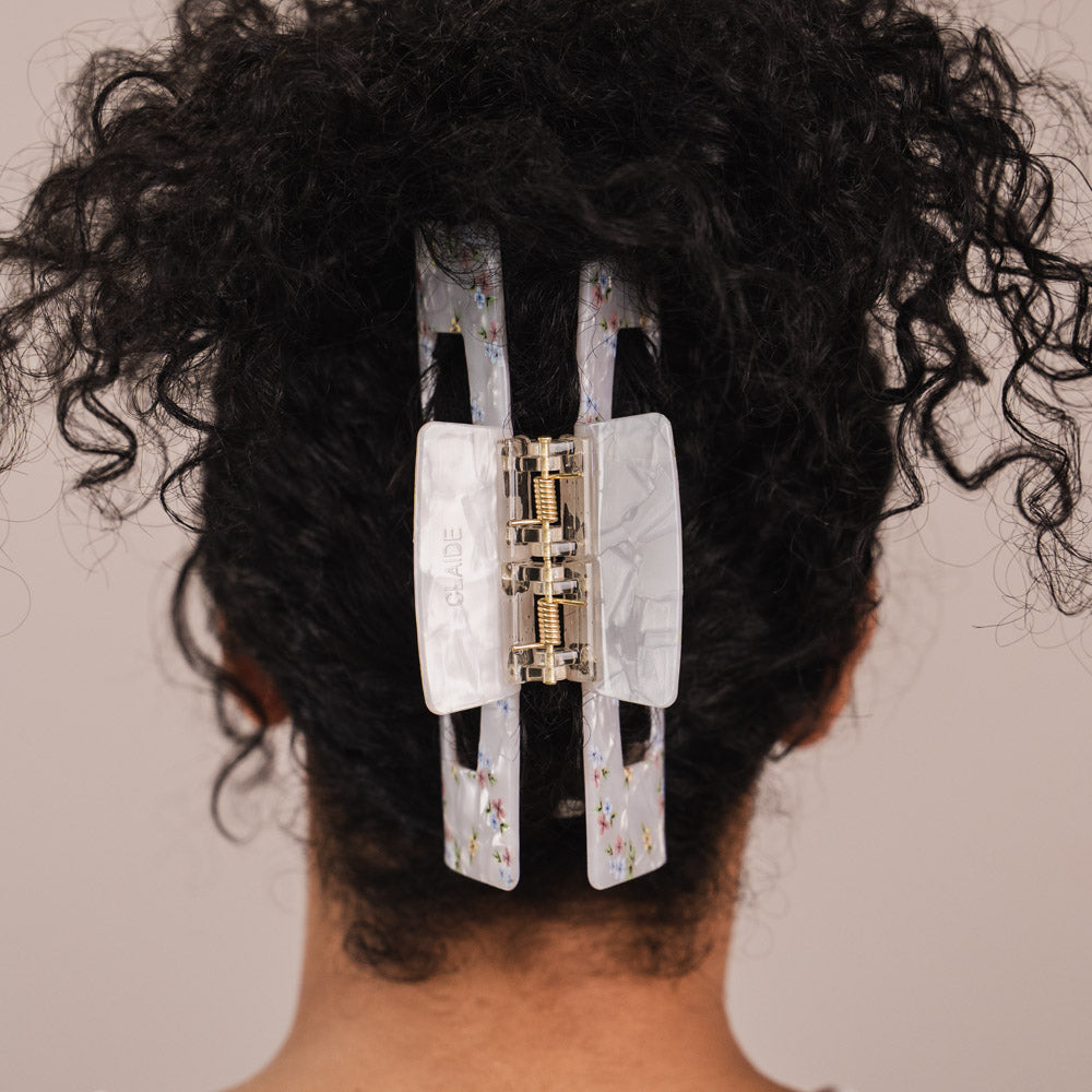 Dank verstärkter Doppelfeder, längerer Zähne und einer extra großen 14,5 cm Form bieten sie maximales Fassungsvermögen und ultimativen Halt – selbst bei besonders vollem, langem oder schwerem Haar.